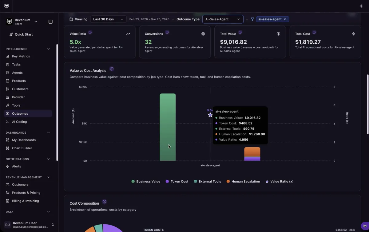 Revenium positions itself as a system for capturing AI transactions, assigning costs to the customer, feature, agent and workflow that triggered them, and setting spending limits in real time. AI Outcomes is now available.